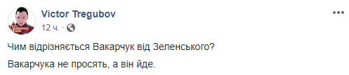 Журналист Виктор Трегубов сравнил Вакарчука с Зеленским.