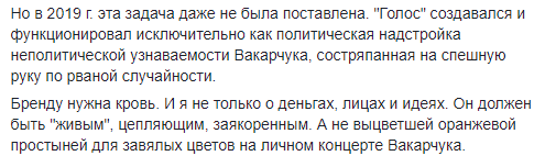 Политтехнолог Олег Постернак считает, что “голос”, который создавался именно “под Вакарчука”, уйдет в политическое небытие.
