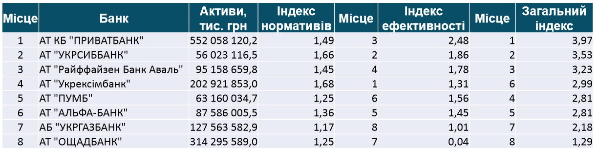 Первая десятка рейтинга всех банков с активами более 2 миллиардов гривен выглядит так: