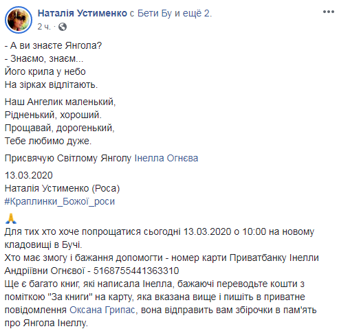 Прощание с Инеллой началось 13 марта в 10:00 на новом кладбище в Буче.