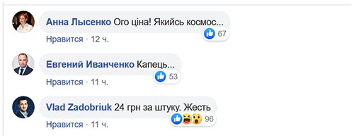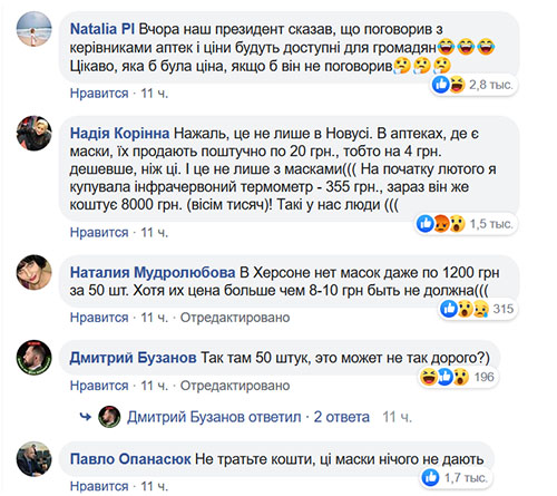 В комментариях пользователи соцсети не сдерживали возмущения, называя цены космическими, а один даже подсчитал, что при такой цене упаковки одна маска стоит 24 гривни.