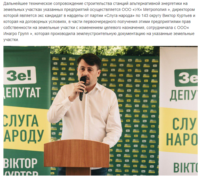 Кілька бізнес-структур скандального представника партії «Слуга народу» Віктора Куртєва є фігурантами кримінального провадження, яке зареєстроване Національним антикорупційним бюро у зв’язку з масштабними земельними аферами в Одеській області. Йдеться про компанії ТОВ «Беліно-Солар», ТОВ «Аджалик-Енерджі», ТОВ «Степанівка-Солар», ТОВ «Августівка-Солар», ТОВ «Солар-Плент-1» і ТОВ «Солар-Плент-2».