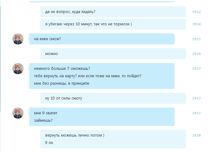 — А есть вот такая разводка, когда чел не может кинуть на киви, но может, скажем, на ЯД. Тогда его просят кинуть на ЯД другой жертвы, а уже эту просят кинуть на киви. Часто такое бывает? Сложно синхронизировать двух жертв?