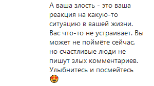 «Бросил вам пару модных брендов, которые продают маски (не по 170 грн). Меня тоже возмущает ситуация с коронавирусом, но я не злюсь на тех, кто делает маски, задрал цены на антисептик или билеты на самолёт. Я радуюсь и отвлекаю себя и окружающих. И смешная маска — отличный повод улыбнуться. А ваша злость — это ваша реакция на какую-то ситуацию в вашей жизни. Вас что-то не устраивает. Вы, может, не поймёте сейчас, но счастливые люди не пишут злых комментариев. Улыбнитесь и посмейтесь», — посоветовал Владимир подписчице.