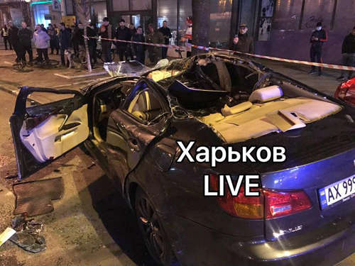 Местное издание "Комментарии.UA Харьков" сообщает, что за рулем Lexus якобы был мужчина, который проходит по уголовному делу со стрельбой по журналисту одного из харьковских телеканалов во время конфликта на рынке «Барабашово».