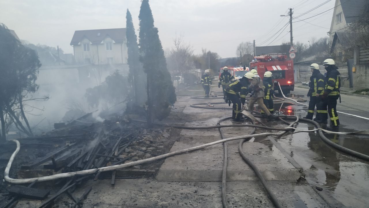 В Голосеевском районе Киева 30 марта вспыхнул масштабный пожар в частном трехэтажном доме на улице Квитки-Основьяненко, 36. В результате здание сгорело дотла.