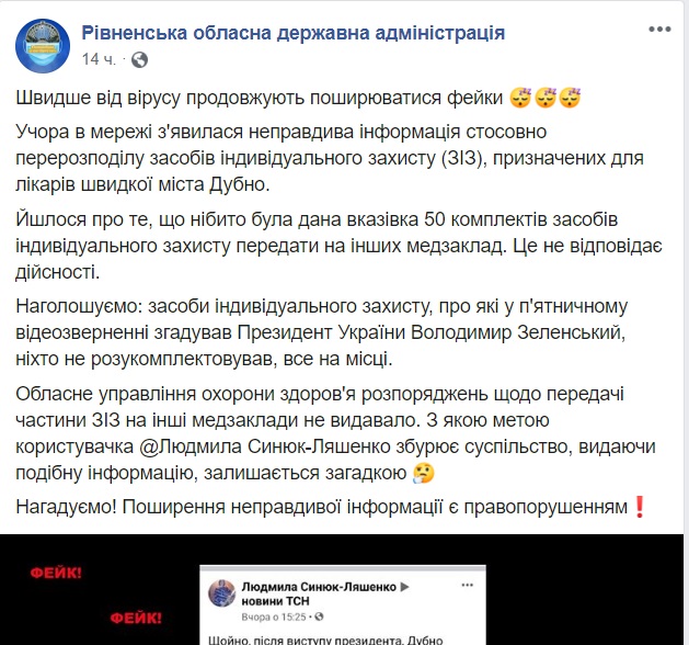У свою чергу в Рівненській обласній держадміністрації заявили, що дана інформація не відповідає дійсності і пригрозили відповідальністю за поширення даної інформації.