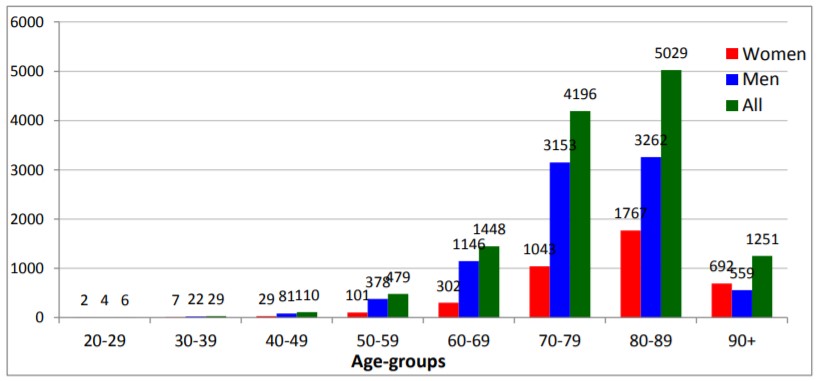 По состоянию на 6 апреля, в Украине умерли 38 человек, у которых лабораторно подтвердился коронавирус. Согласно данным ЦОЗ за 4 апреля, среди мужчин больше умерших в возрасте от 60 до 69 лет (34%), среди женщин – от 50 до 59 лет (37%).