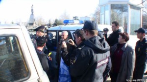 Тем не менее, активисты собрались на площади Нахимова. После того, как возле памятника собралось около десяти человек, к ним подошли сотрудники полиции и потребовали прекратить «незаконное массовое мероприятие». Активисты предприняли попытку провести митинг, после чего полицейские потребовали от активистов пройти к служебному автомобилю для составления протокола об административном правонарушении. На эти требования активисты также ответили отказом, после чего несколько сотрудников полиции с применением физической силы отвели к автомобилю трех организаторов митинга, среди них — координаторов движения «Защитим Севастополь» Василия Федорина и Александра Карлюка.