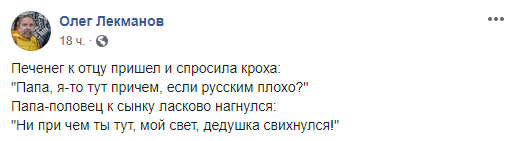 Упоминание Путиным печенегов и половцев повлекло за собой волну шуток в украинском и российском сегментах Facebook. Пользователи поинтересовались, когда в России отпразднуют победу над печенегами и вспомнили другие “исторические успехи” страны. Также заявление президента РФ породило немало “мемов”.