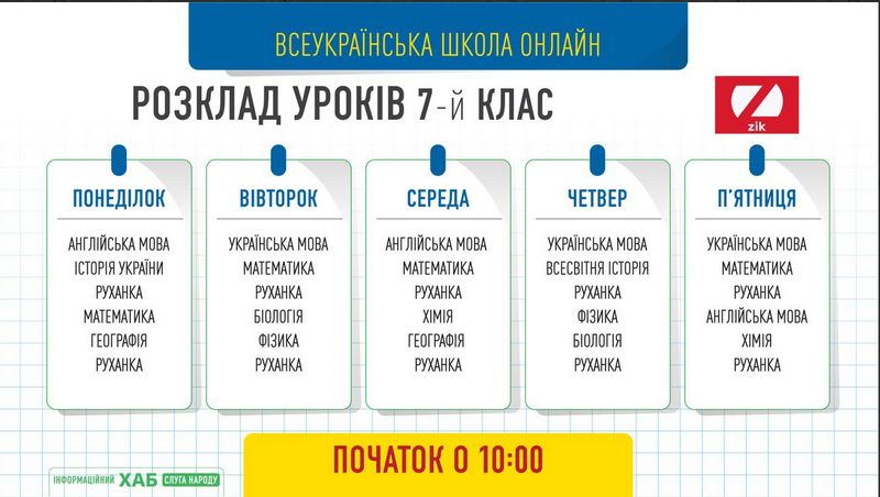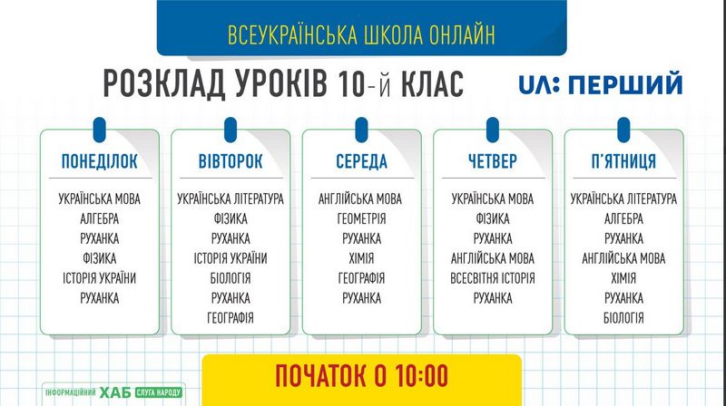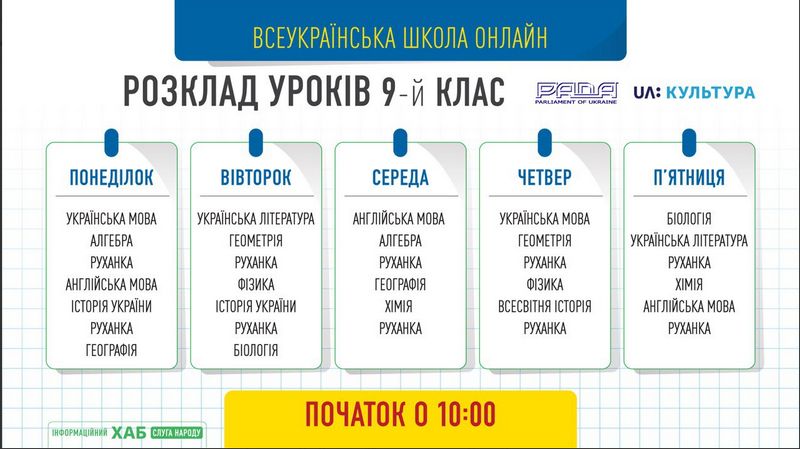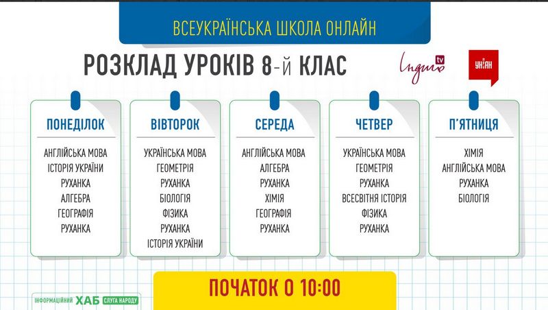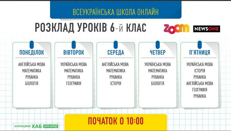 Каждый класс закреплен за конкретными телевизионными каналами. Кроме того, видеоуроки транслируются на официальных сайтах Министерства образования и науки Украины в Facebook и на канале YouTube.