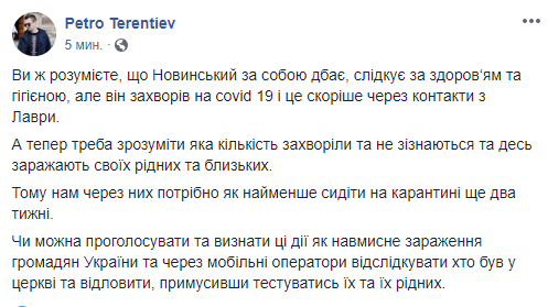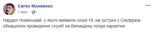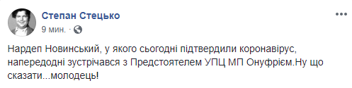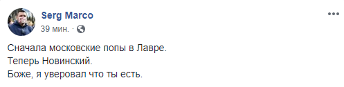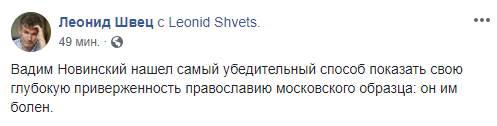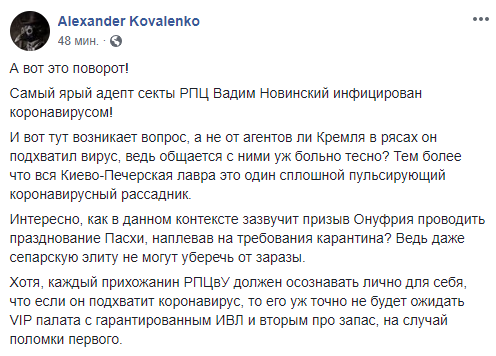 Блогер Александр Коваленко пишет, что Новинский подхватил вирус от агентов Кремля в рясах.