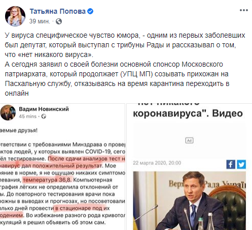 Есть Бог на свете. Украинцы радуются заболеванию Новинского коронавирусом