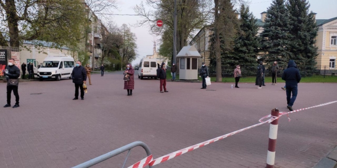 Полиция далога расставляет прихожан в очереди с соблюдением дистанции. Все они ждут приезда благодатного огня. Всего будет два потока людей на вход и выход с церкви. Полиция не планирует препятствовать посещению прихожан лавры.