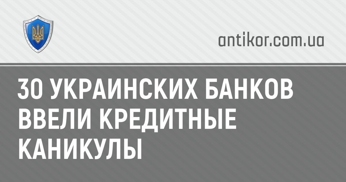 По данным Национального банка, кредитные каникулы из-за карантина и пандемии коронавирусной болезни полностью или частично ввели 30 украинских банков.