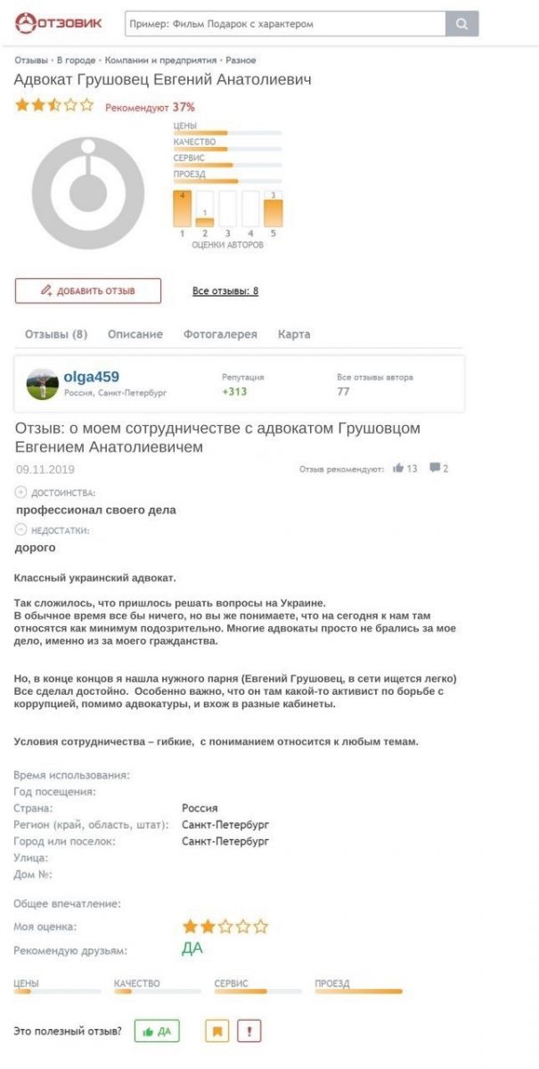 Да, конечно, в отзыве речь идет об его успехах в отстаивании интересов российских граждан в имущественных спорах на территории Украины. Такой вот у нас Грушовец юридический свингер…