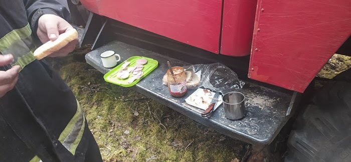 Часть, из которой приехал спасатель Никита, на три дня отправили под границу с Беларусью. Там спасатели ночевали в автомобилях и ели то, что прихватили с собой. По словам пожарного, обед им привезли только раз за три дня - борщ, кусок хлеба и холодный чай. Никита возмущается, что пожарные преимущественно питались за свой счет, а за день в командировке получают 76 гривен.