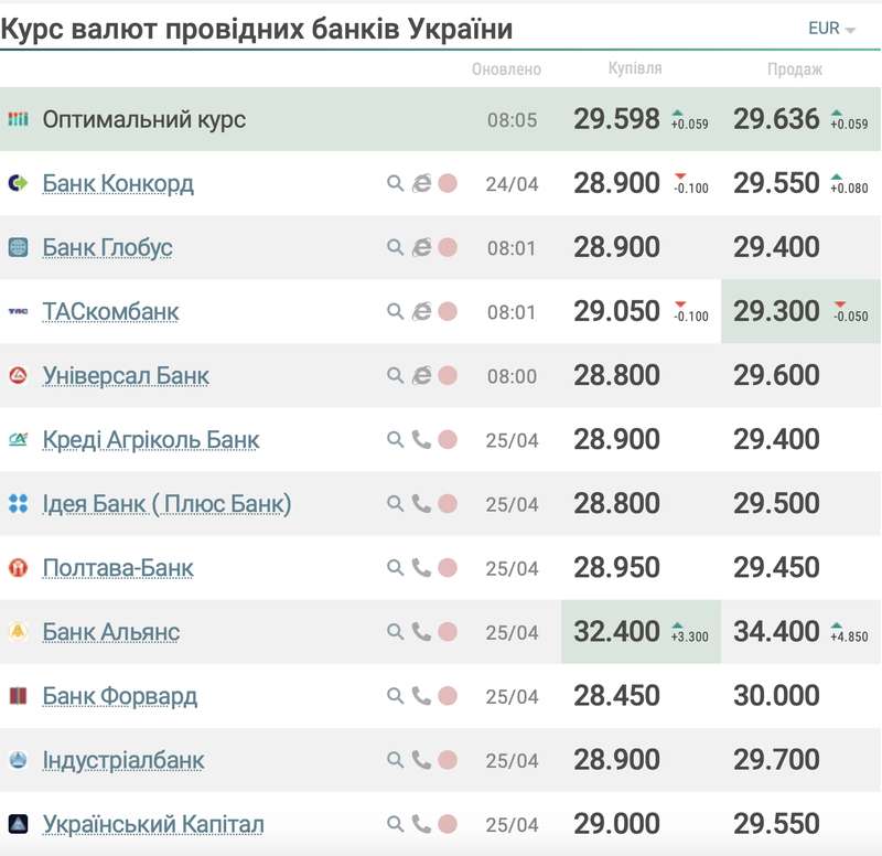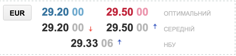 Покупка – 29,20 грн/€