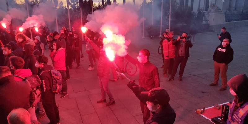 Туди і рушила колона активістів.  Під будинком, де за припущенням мешкає генпрокурор, активісти запалили фаєри та вимагають вийти до них Венедіктову.