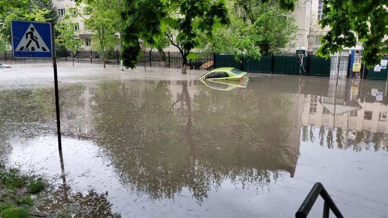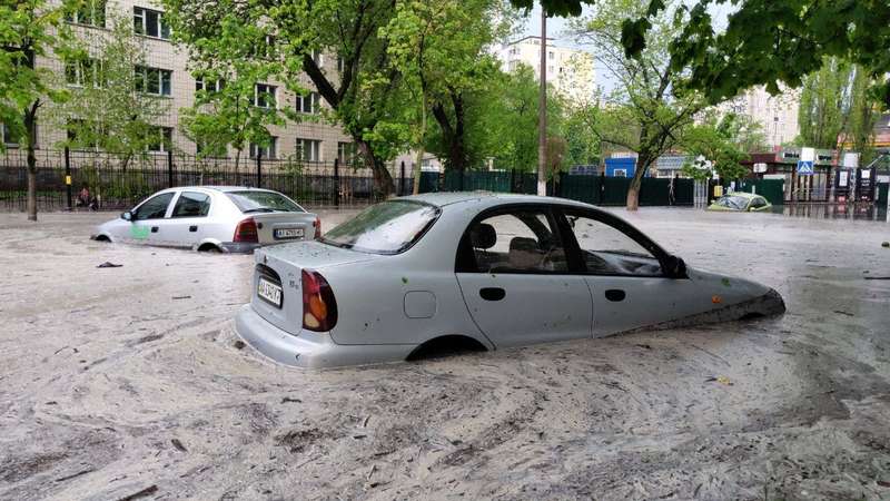 У Солом’янському районі столиці справжнє стихійне лихо сталося на вулиці Кудряшова. Потоки води з місцевого парку затопили частину вулиці.