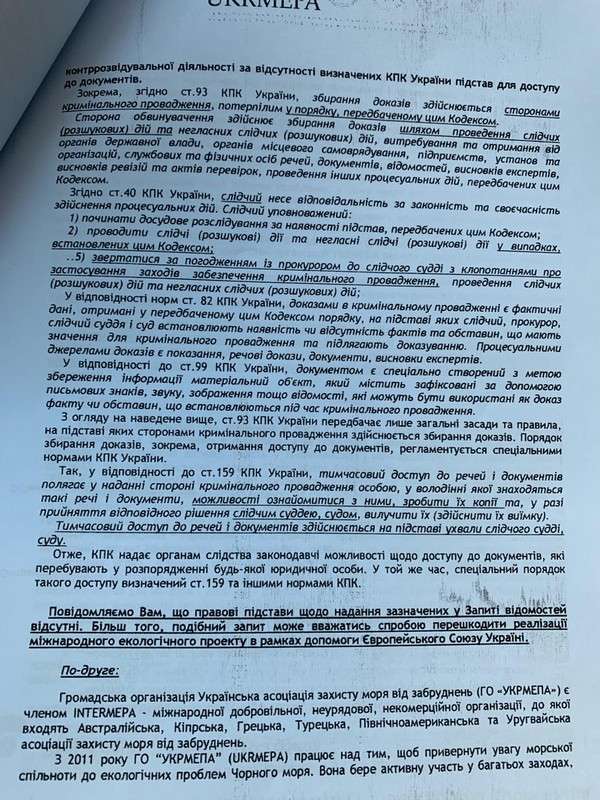 Тем не менее, в Одессе не все готовы мириться с таким положением дел. В частности, юристы Украинской ассоциации защиты моря от загрязнений «УКРМЕПА» (которая является членом международной организации INTERMEPA) на 6 листах объяснили господину Прокопенко почему его требования являются необоснованными и незаконными. Копию данного письма одесситы направили главе СБУ Баканову, министру финансов Украины и многим представителям международных организаций. Усмирят ли «киевские товарищи» своего зарвавшегося подчинённого – вопрос, как говорится, открытый.