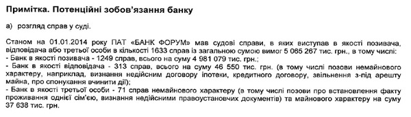 На начало 2014 года, банк нарастил сумму исков к своим заемщикам до 5 млрд гривен.