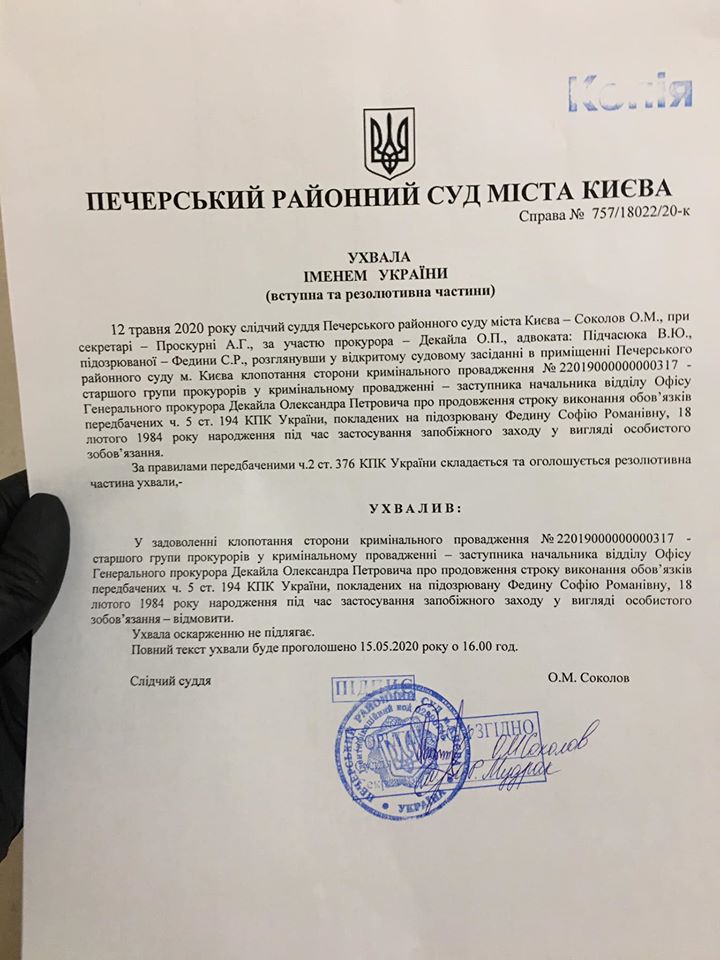Теги: ЗеленскийугрозыФедина СофияПечерский судСуд