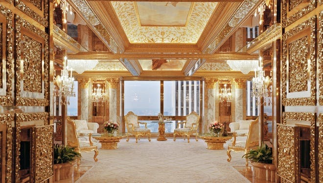 Но настоящий фурор произвела фотосессия магната с его супругой и сыном, сделанная в пентхаузе в Трамп-тауэр на Манхеттене. Золото, золото и еще раз золото. Роскошнейший интерьер, подлинники старых мастеров и книга-трибьют Мохаммеду Али стоимостью в 15 тысяч долларов.