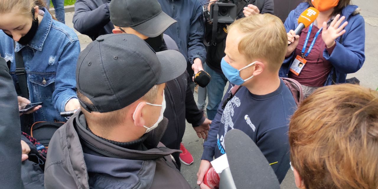Поліція заблокувала прохід депутату від партії “Голос” Ярославу Юрчишину, що хотів пройти до будівлі СБУ з вогнегасником.