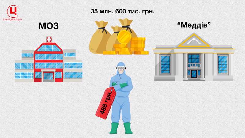 По договору, заключенному Министерством здравоохранения и компанией «Меддів», защитные костюмы для медиков должны быть поставлены до конца апреля. Согласно дополнительного соглашения, их должны были доставить в Киев по адресу Березняковская, 29. По этому адресу находится Государственное предприятие «Укрмедпостач», куда поставляют все закупки Минздрава за государственные средства. Однако груз с защитными медицинскими костюмами из Китая в определенный договором срок доставлен не был.