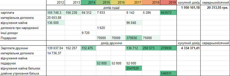 Ми проаналізували майнові декларації Івана Капуша за 2012, 2013, 2014, 2015, 2016, 2017, 2018 та 2019 роки. Високу зарплату суддя став отримувати лише торік, а до цього жив на подарунки від батька Сергія Капуша, який раніше був головою суду, де нині й працює Капуш-молодший. У 2013-му Капуш-старший подав Вищій раді юстиції заяву про відставку з посади голови Тростянецького райсуду Вінницької області. Тепер він отримує непогане довічне утримання. За минулий рік він отримав 546 031 грн або 45 500 грн щомісяця.