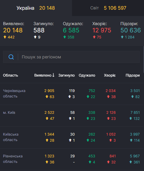 По состояню на утро пятницы, 22 мая, в Украине официально подтверждено 20 148 случаев коронавируса COVID-19. Из них 442 факта заражения были обнаружены за прошедшие сутки.