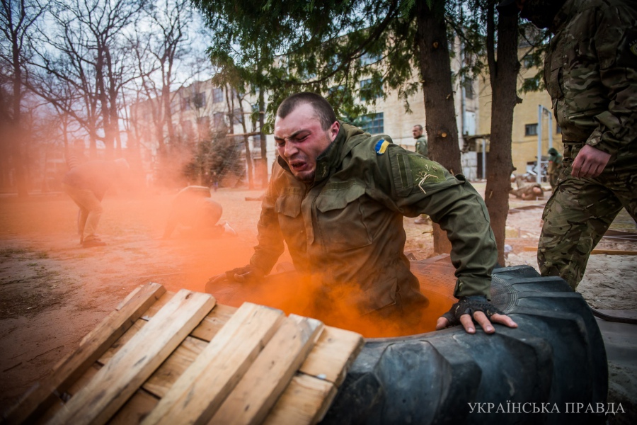 В минувшие выходные в тренировочном лагере полка "Азов" в Киеве, что находится на территории бывшего завода "Красный экскаватор", новобранцы после двух недель подготовки сдавали экзамен "Спартан", что означает спартанец, а также - "суровый".