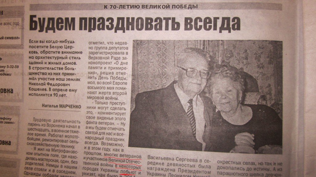 "Возможно и в этом году, как и в прошлом, многих ветеранов и участников Великой Отечественной войны в некоторых городах Украины побьют и унизят, как было в 2014-м во Львове. Тогда с пожилых седовласых стариков, отвоевавших для Европы мир, срывали ордена и наградные планочки" - пишет "Знамя индустрии".