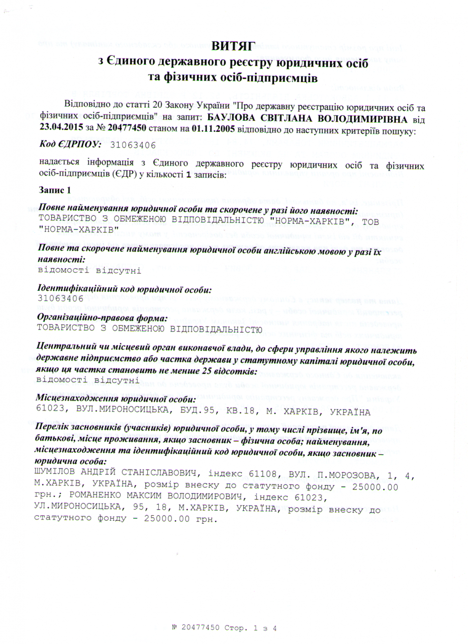 1. Директором ООО «НОРМА-ХАРЬКОВ», учредителем которого выступал Максим Романенко.