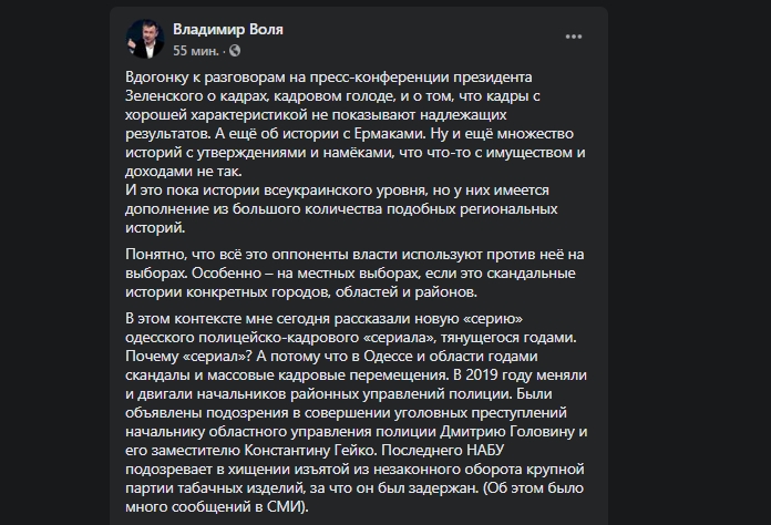 Об этом сообщил на своей странице в Facebook журналист и политолог Владимир Воля.