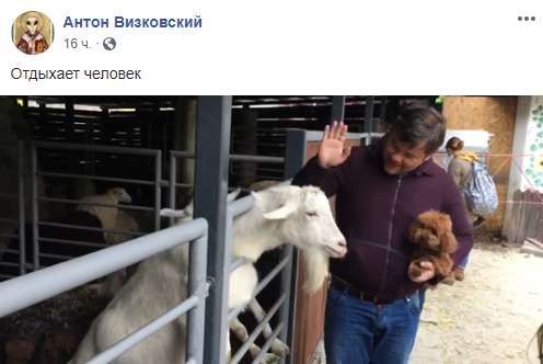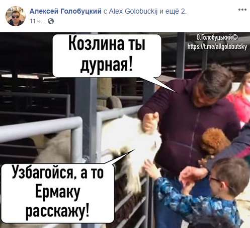 Экс-глава Офиса президента Украины Владимира Зеленского Адрей Богдан в контактной зоне Киевского зоопарка, где все желающие могут покормить и погладить животных, “пообщался” с козлом.