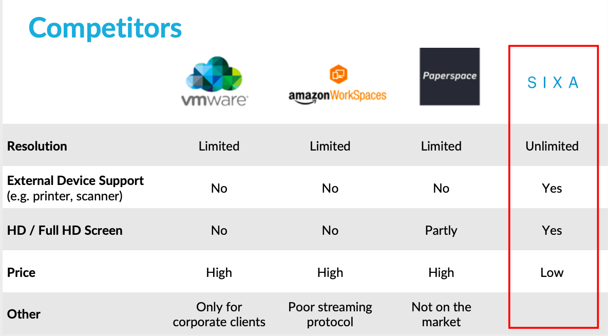 Идея Sixa заключалась в том, чтобы дать доступ пользователям к мощному виртуальному компьютеру, который позволит использовать на старом «железе» тяжелые программы. Например, VR игры или оболочки для сложных инженерных вычислений, которые раньше установить или использовать было невозможно из-за аппаратных ограничений.