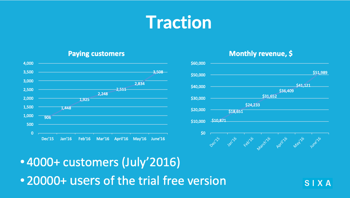 Трекшн Sixa, заявляемый стартапом в апреле 2017 года. Страница из отчета инвесторам