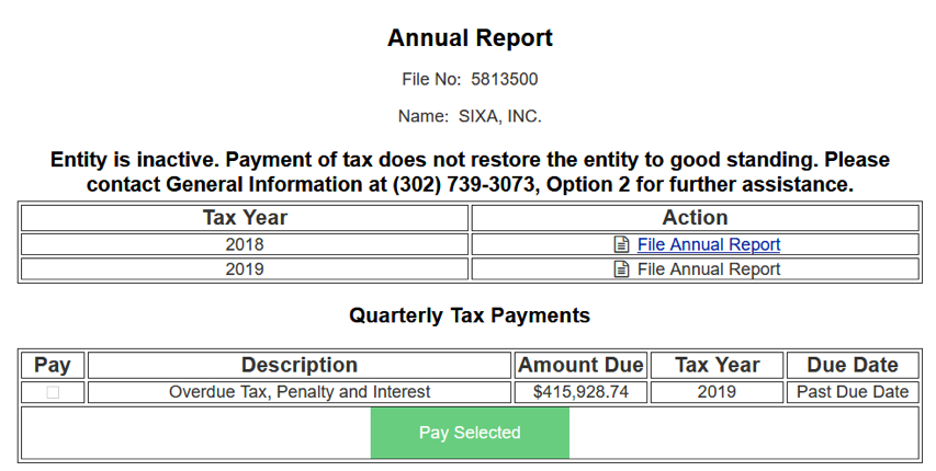 На суды в США Минченко не появляется. По адресу в Калифорнии (который указан на его водительском удостоверении) он не проживает уже более года. Компания, которую Минченко зарегистрировал в Делавэре, не платила налоги и не подавала отчеты с 2018 года. Скопившийся налоговый долг Sixa — более $400 000.