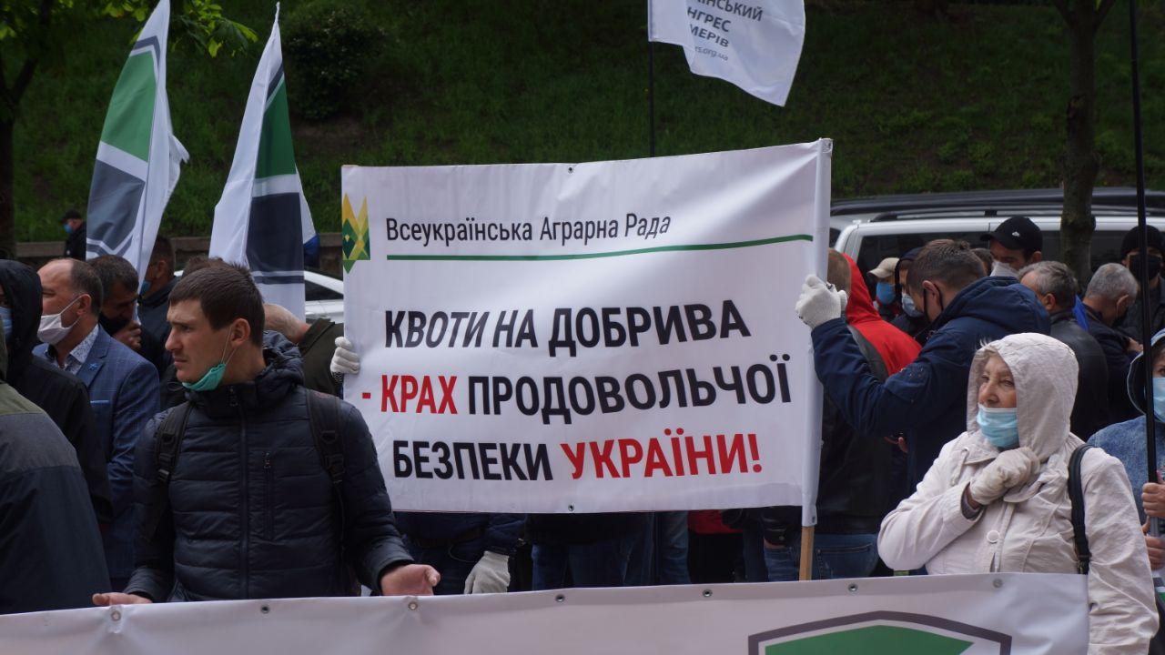Під Кабінетом Міністрів забралися аграрії, які протестують проти запровадження в Україні квот на імпорт мінеральних азотних добрив.