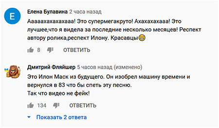 В свою очередь Дмитрий Фляйшер выступил с собственной версией появления клипа — по его мнению, Маск изобрел еще и машину времени.