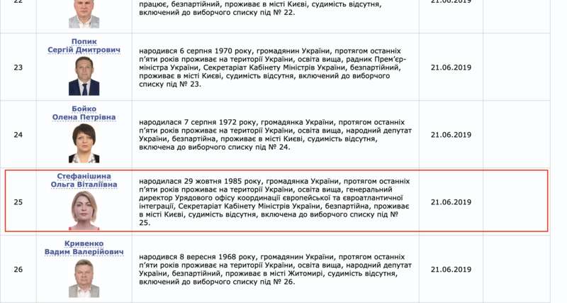 Як передає ІНФОРМАТОР, дані про балотування Стефанішиної від партії Гройсмана відображені на сайті Центральної виборчої комісії. У списку “Української стратегії” чинний претендент на пост міністра посідала 25 місце.