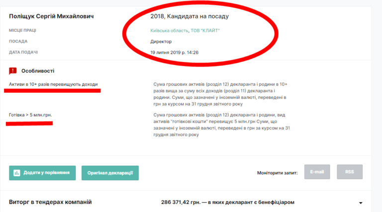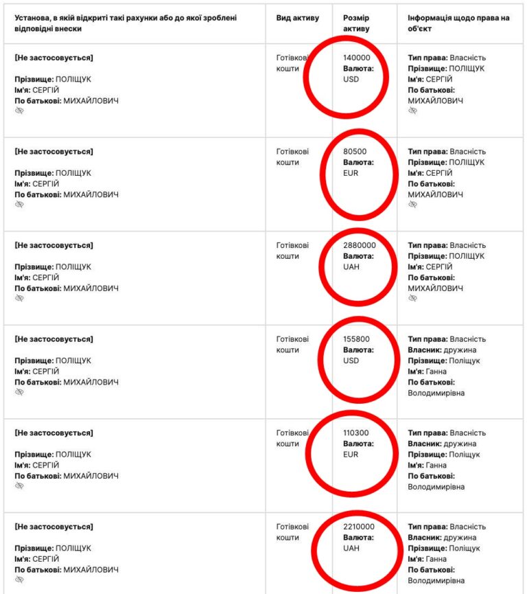 Декларация Сергея Полищук имеет сразу два красных флажка! Так как активы превышают доходы более чем в 10 раз и он декларирует он более чем 5 миллионов грн. наличными!