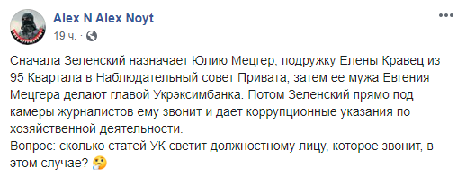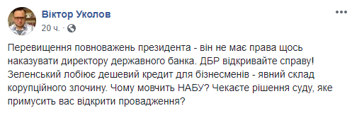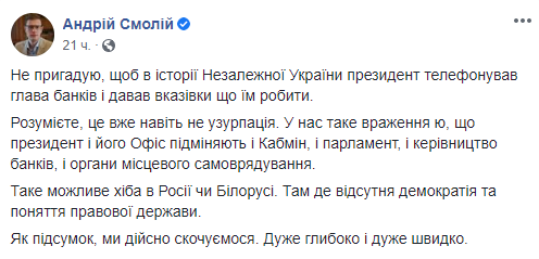 Не первый раз Зеленского словили на панибратском отношении к независимым банковским структурам. Во время пресс-конференции по итогам года президентства, Зеленский заявил, что власть пытается “дожать” банковскую систему, чтобы запустить кредитование бизнеса под низкие проценты. Тогда президента обвинили в превышении полномочий. Так произошло и на этот раз. Пользователи украинского сегмента Facebook считают, что такие действия президента – незаконны.