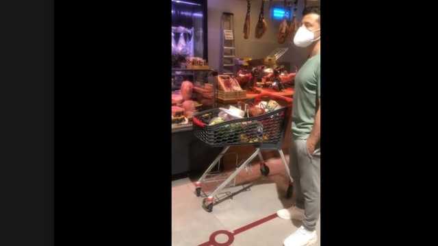 На видео Владимир Зеленский был в той же одежде, что и на сегодняшней прогулке с журналистами, и в респираторе. Он стоит рядом с тележкой продуктов.