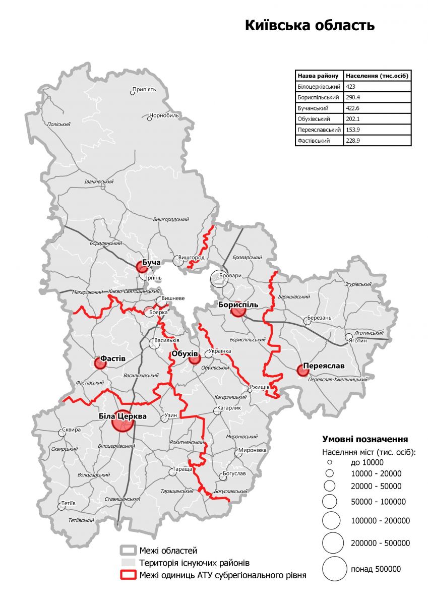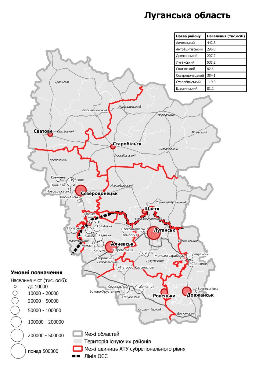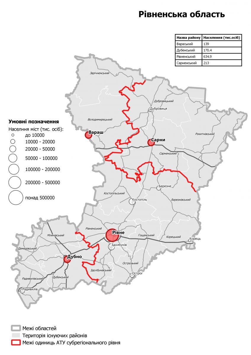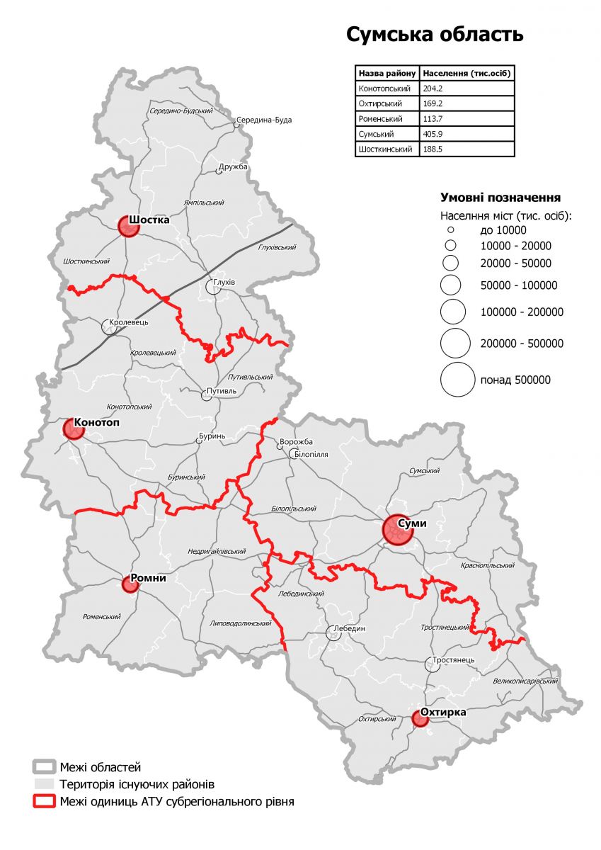 Необходимость изменения районного деления объясняют, в частности, большими диспропорциями. К примеру, в самом маленьком районе Украины проживает более 5,6 тысяч населения, а в самом большом — Харьковском — более 182 тысяч людей.