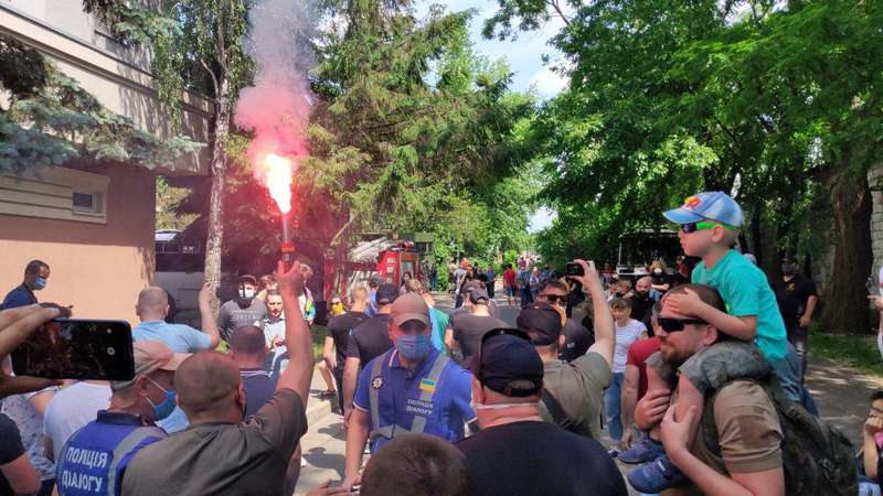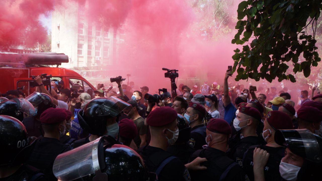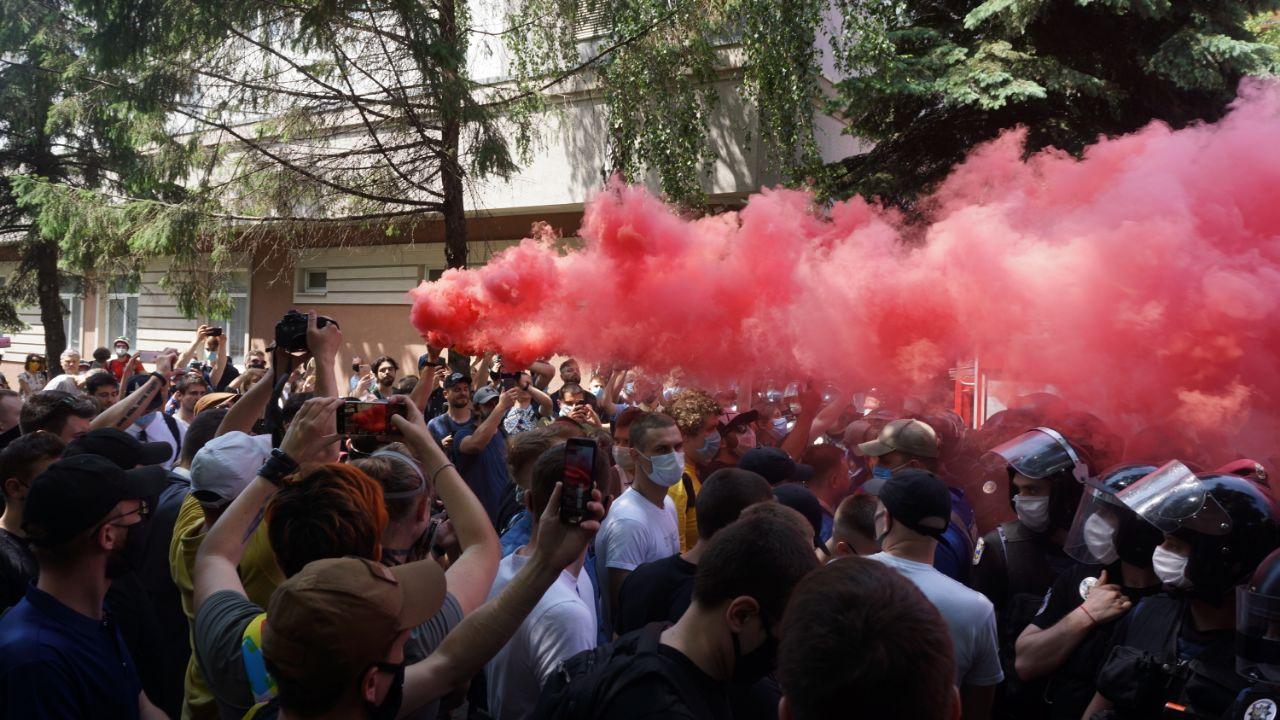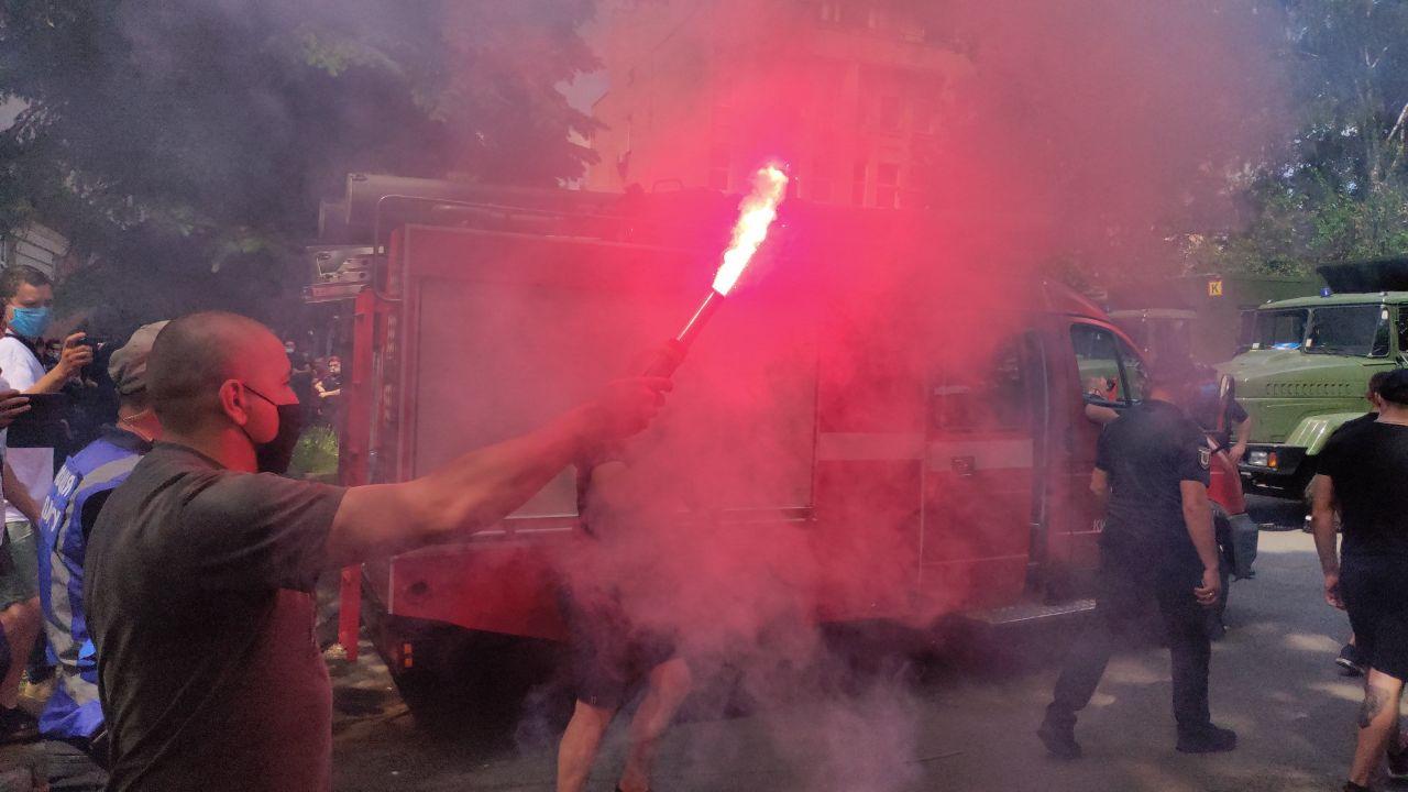 Конфлікт під будівлею суду супроводжувався підпалюванням димових шашок.