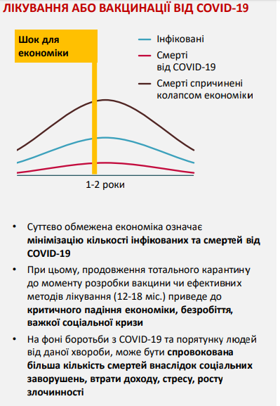 Однако в Кабмине уверены, что в таком случае лекарство оказалось бы более губительным, чем сама болезнь. Мол, число смертей из-за последствий экономического шока в разы бы превышало количество зараженных.