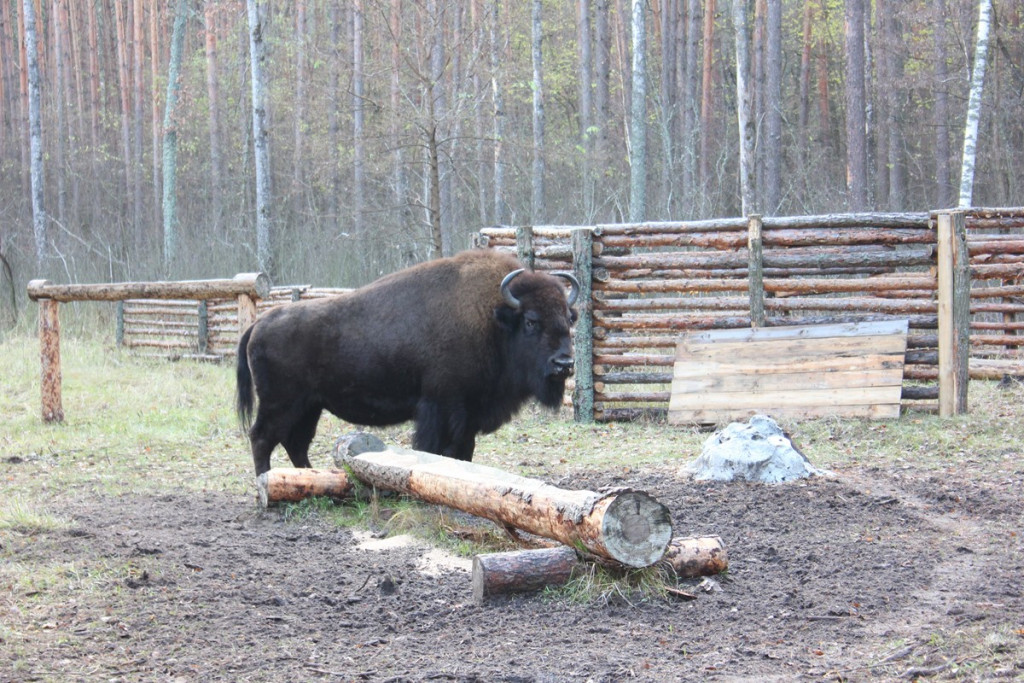 Бізон у вольєрі ТОВ “Спілка мисливців “Фауна”; фото газети “Трибуна праці”.